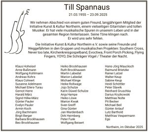 Till Spannaus † 23. Sep. 2025 – In Gedenken an unser langjähriges Bandmitglied und Freund. (Guitar, Vocal, Bands: Southern Cross, YOYO Reggae Band u.va.m )